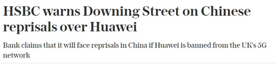 英国《每日电讯报》6月8日透露,汇丰最近几周都在唐宁街为华为的事情“奔波求情”。