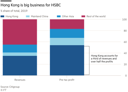 一位汇丰高管曾直言:“如果疏远中国当局,将危及汇丰银行的未来;如果疏远香港,将冒(失去)目前所有收入的风险。”