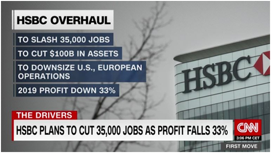 香港的经济衰退在加深,汇丰银行也受到很大影响。而且,疫情也打断了汇丰原定的瘦身步子。