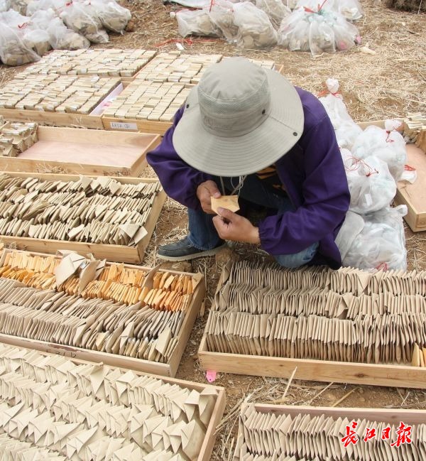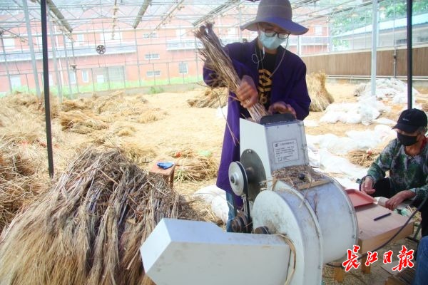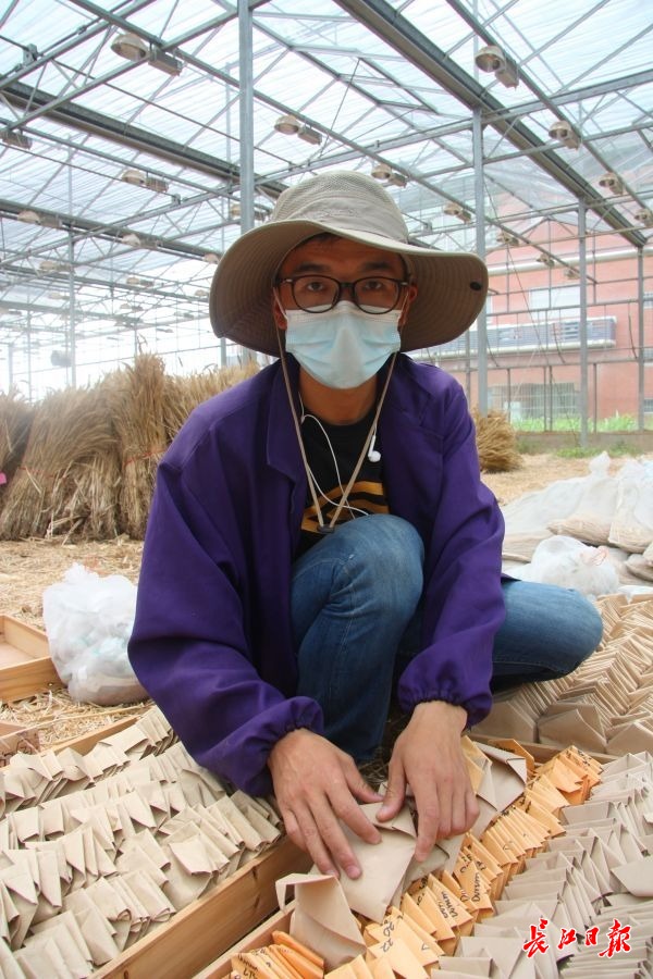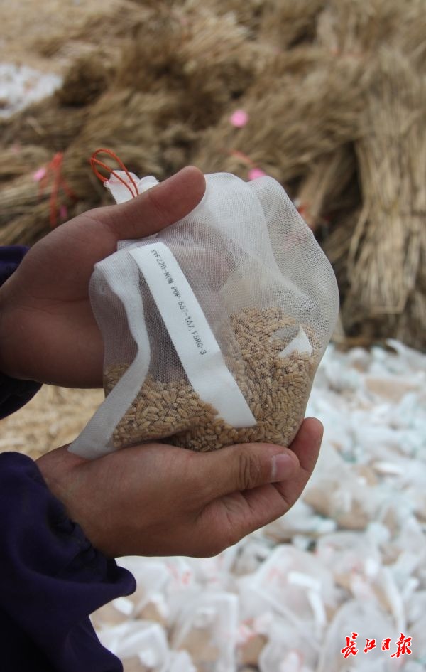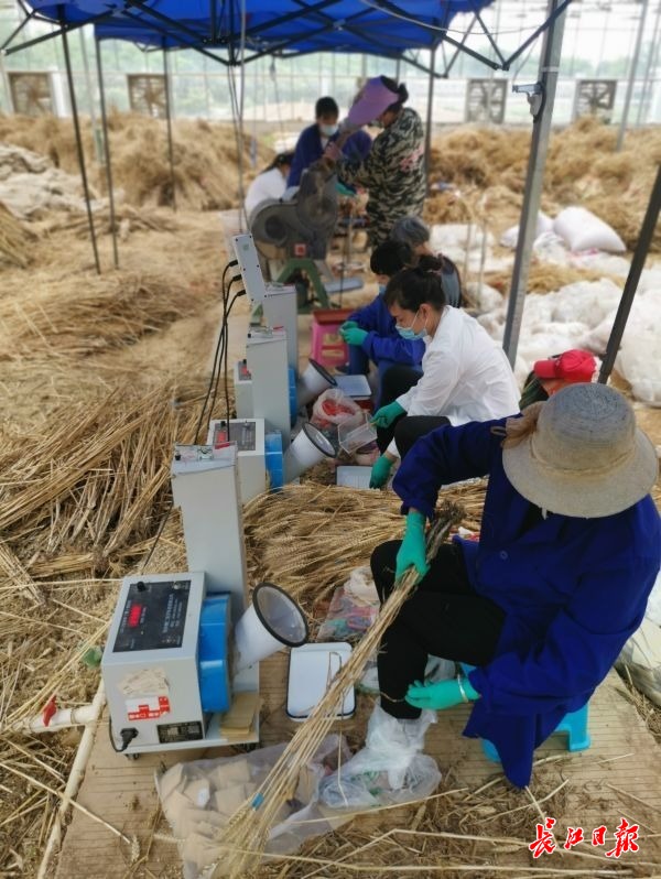 长江网6月11日讯 6月11日,华中农业大学2019级作物遗传育种专业博士生李志康与课题组团队,在玉米温棚里对收割的50亩小麦实验材料进行脱粒、分类、编号装袋。今年他在导师指导下,带领学校小麦改良创新团队,对种植的50亩来自世界各地的数万品种小麦,进行抗病抗高温抗寒耐旱实验。他说,时间不等人,实验用小麦材料收割后堆在借用的玉米研究团队的温棚里,需要尽快脱粒装袋,带回实验室做研究。 记者杨涛 通讯员蒋朝常摄影报道