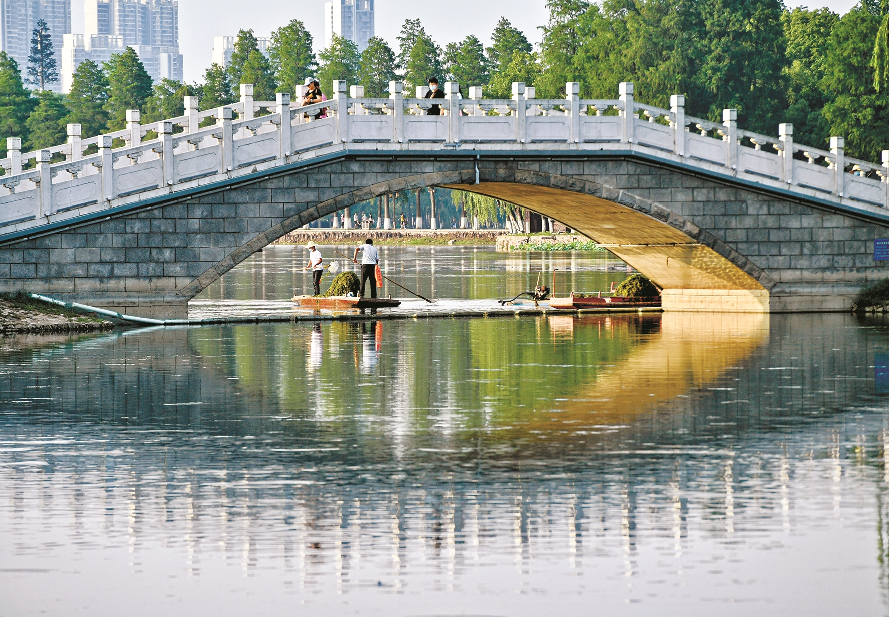 当蔡志林一人一舟在湖面工作,常常被游客争相拍照;忙完一天的工作,蔡志林掏出手机拍一张东湖的照片,内心就有满满的成就感。“这个美丽的城市,此刻也与我有关啊。”