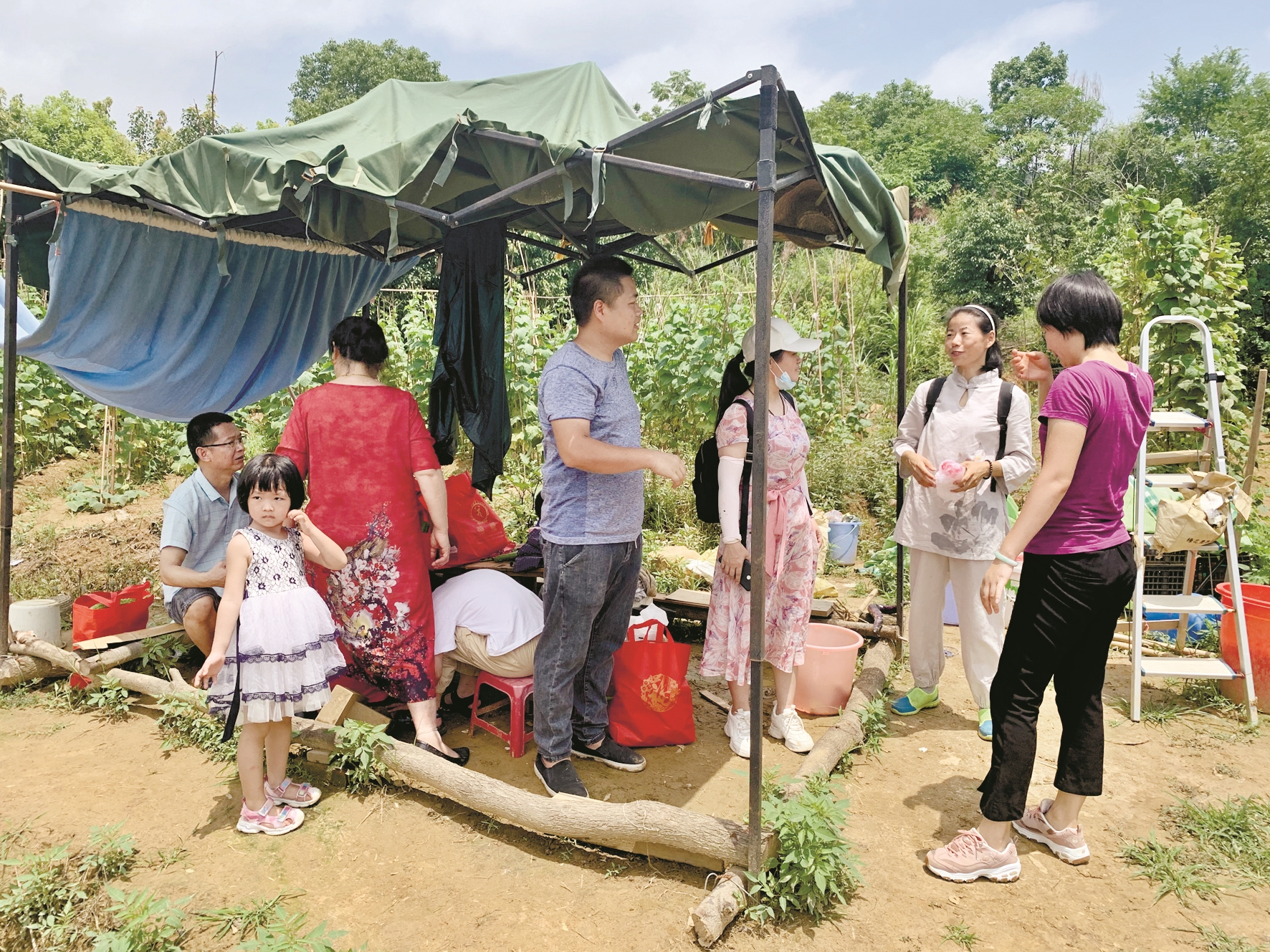 尽管天气炎热,但预约来寺院菜地打卡的市民很多