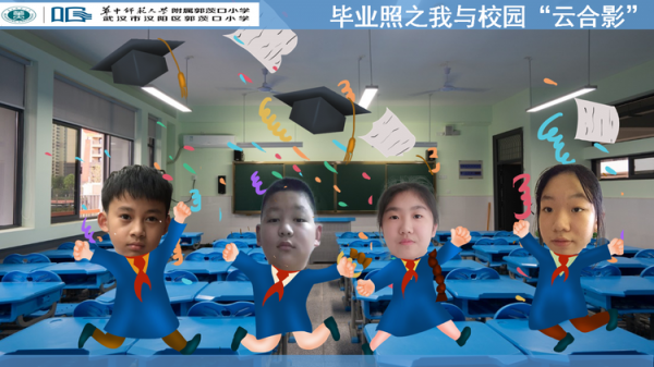 长江网6月12日讯(记者杨幸慈 通讯员杨学工)6月12日,华中师范大学附属郭茨口小学六年级学生收到了学校准备的特殊毕业礼——和校园“云合影”。