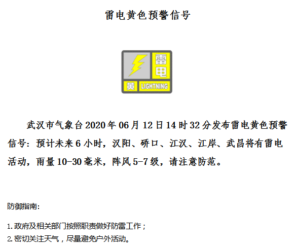【6月12日14:32雷电黄色预警】
