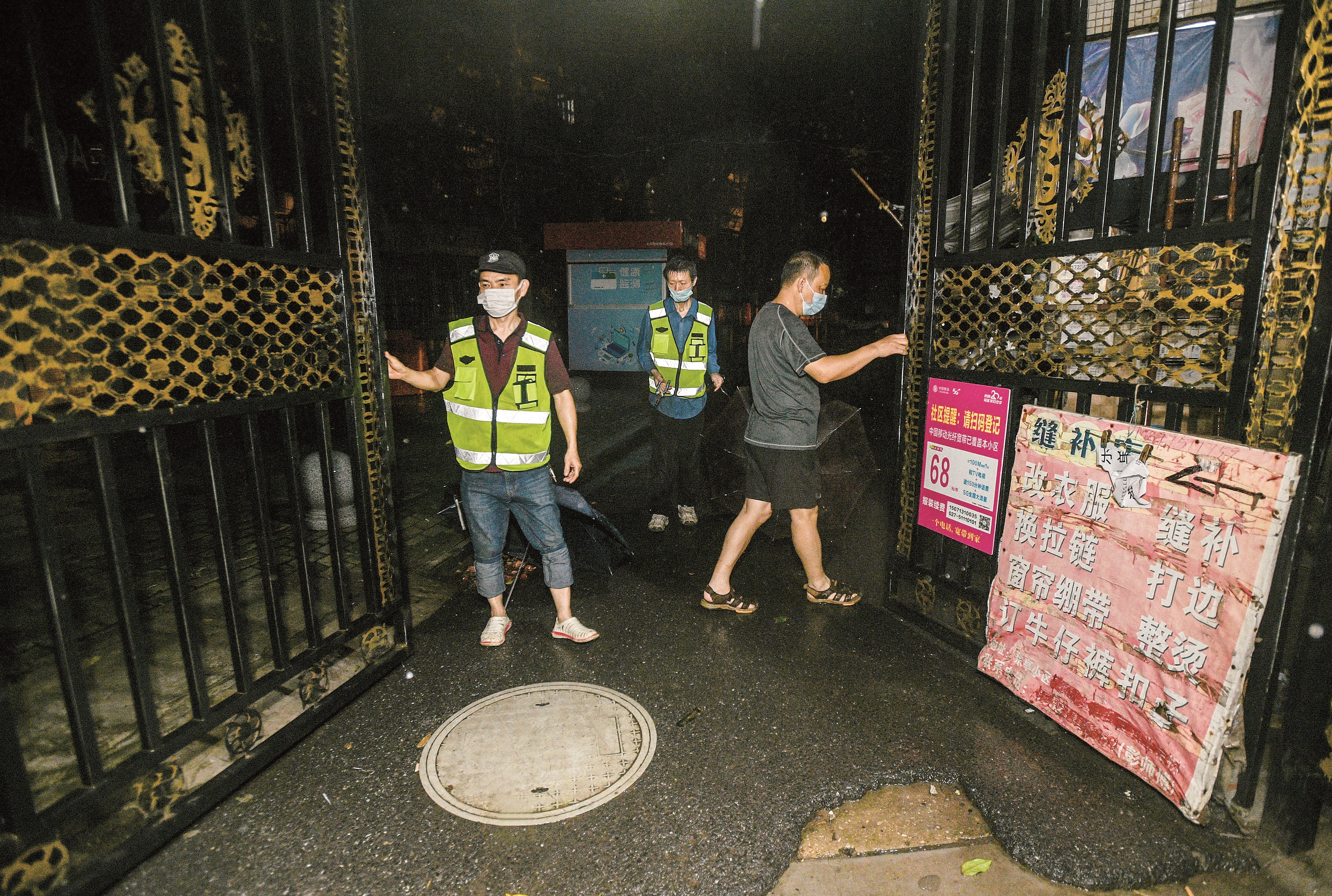 今日凌晨零时刚过,武昌东亭小区3号门重新开放,工作人员开始拆除小区周边隔挡围栏。 楚天都市报记者邹斌摄