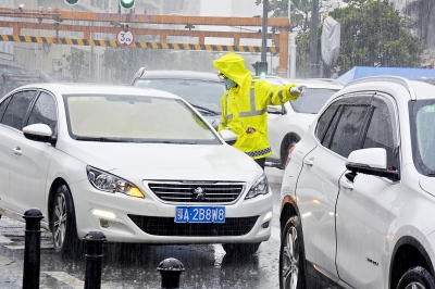 风大雨急,有些地方出现了倒树、断枝的情况。各区园林局出动应急抢险队、应急抢险吊车等,及时对倒树、歪树、断枝等进行处置清理,优先保障交通正常通行。