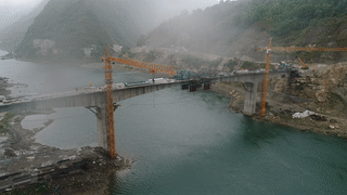 14日上午,郧西县景阳乡兰滩口汉江大桥施工现场一派繁忙,施工人员在对桥面上的钢筋网进行焊接。大桥正在进行最后两跨施工,预计6月底7月初大桥合拢,9月初大桥正式交付使用。