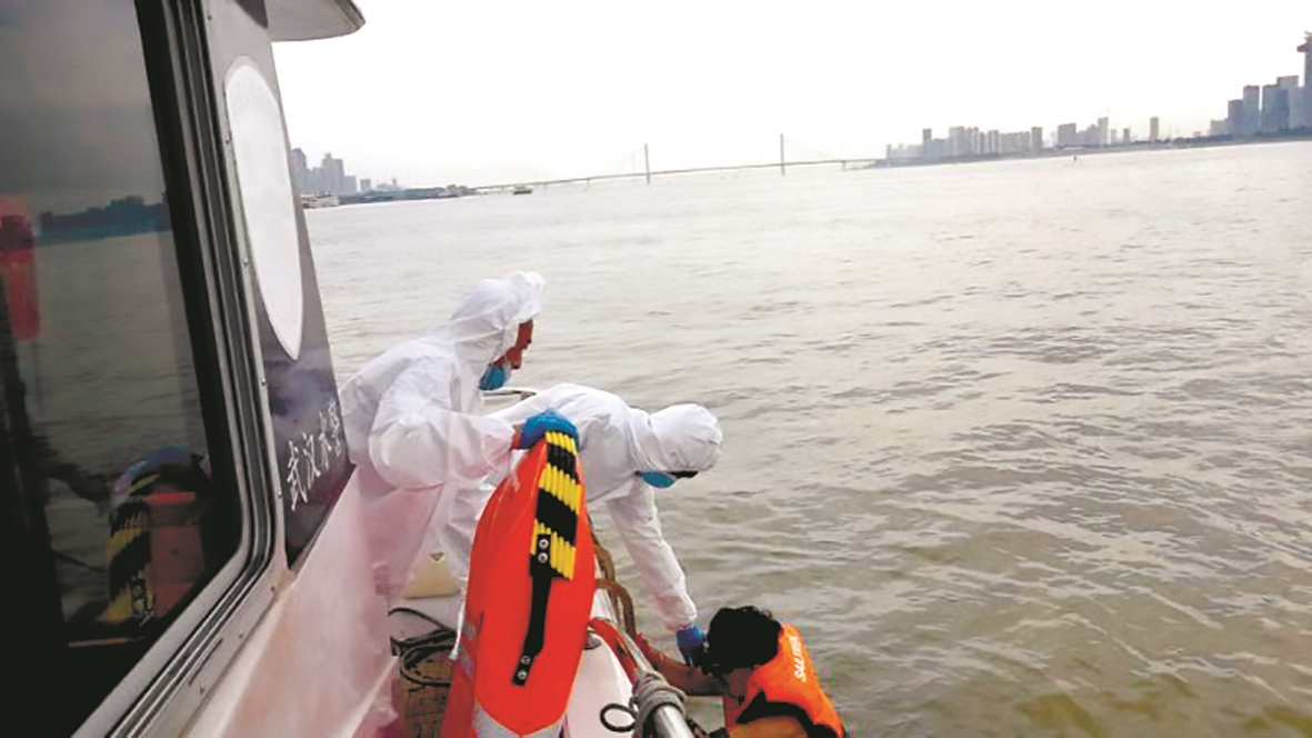 接警后,民警周攀峰带着两名辅警,驾驶救生快艇迅速赶到江面上搜救。江面宽阔水流湍急,如何才能找到落水者?民警与报警人反复沟通后搜寻,十多分钟后,终于在武汉关水域发现一名落水男子。