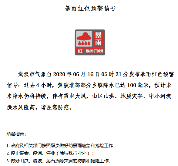 武汉发布暴雨红色预警,这些地方降水仍将持续