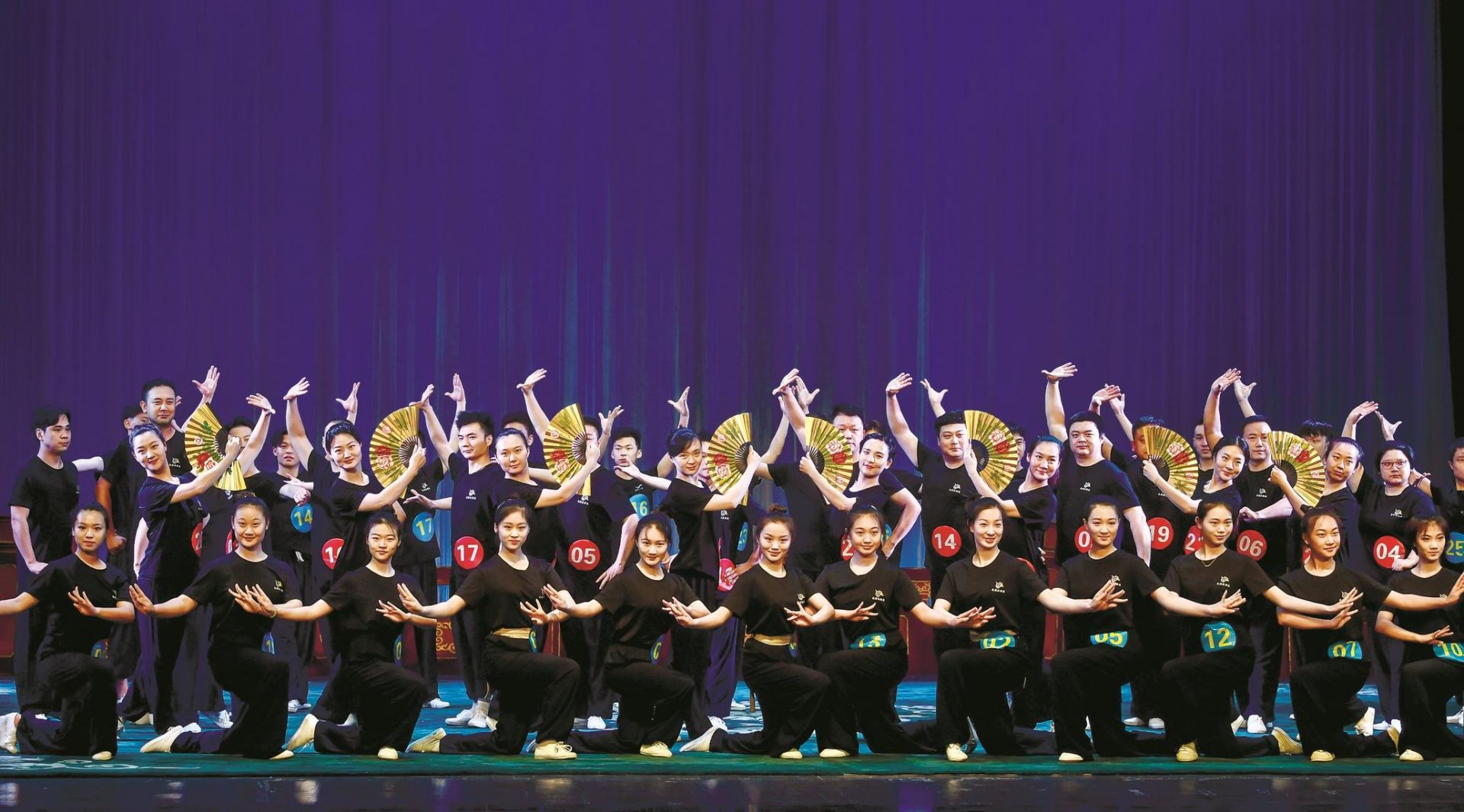 记者在现场看到,演员组的基本功率先呈现,十人左右一组展示腿功、腰功、身段、扇子、水袖、圆场、顺风旗、衫膀、卧鱼、跪步、跟头、刀枪等体现戏曲程式化的形体技巧。