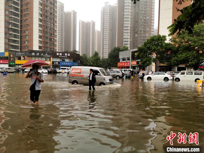 暴雨来势猛,强度大,造成襄阳市城区内开启“看海”模式,多处路段渍水深达0.3—0.5米,低洼地带有的甚至超过1米,致使市区内一段时间交通电力中断,多辆汽车抛锚水中,过往车辆和行人均无法通行。