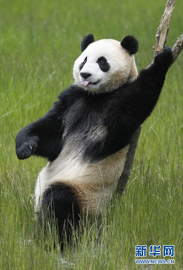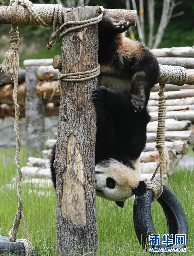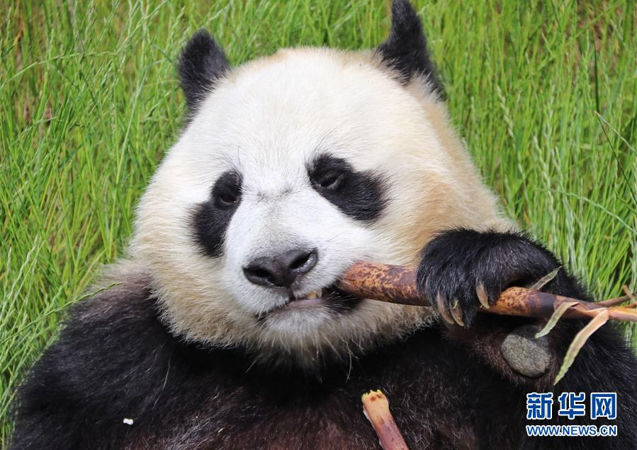 在位于四川省阿坝藏族羌族自治州的九寨沟大熊猫园拍摄的大熊猫(6月19日摄)。 新华社记者 刘坤 摄