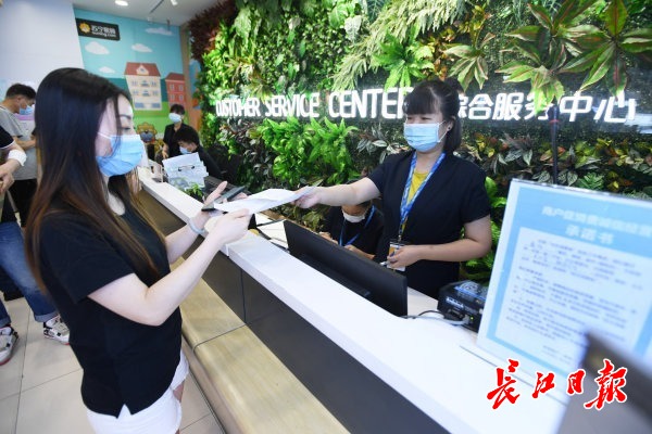 6月16日,武汉苏宁易购开展“7天无理由退货放心购物”活动。顾客在综合服务中心办理相关手续。 记者高勇 摄