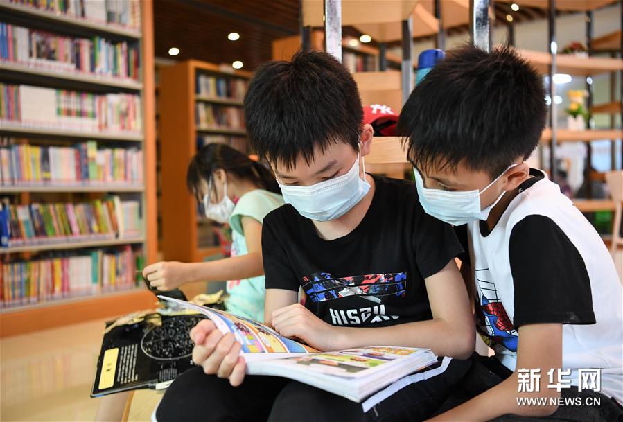 小朋友在水藤村红基石党群服务中心的书舍内阅读(6月13日摄)。新华社记者 邓华 摄