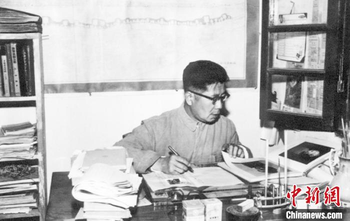 20世纪50年代,常书鸿在敦煌文物研究所办公室工作 未名 摄