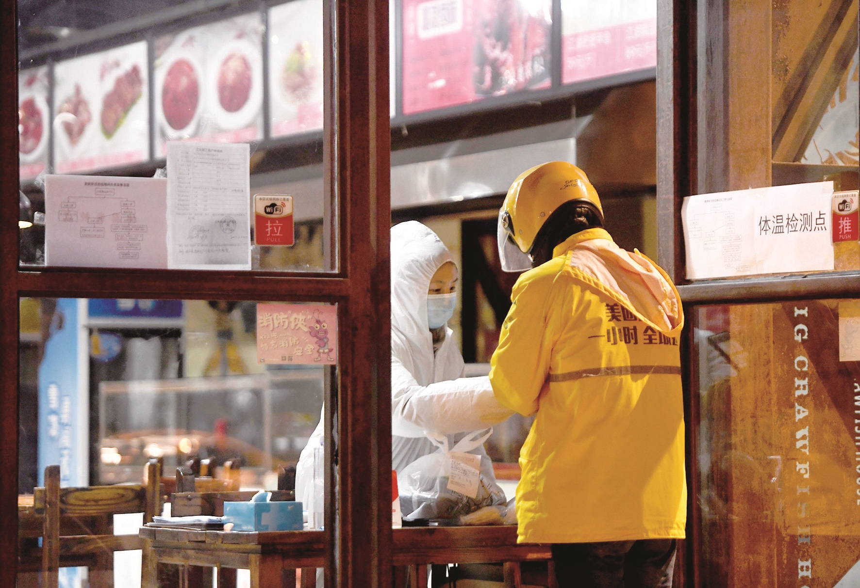 深夜美团外卖小哥在取外卖