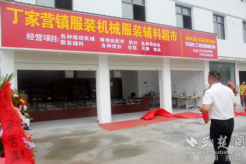 荆楚网客户端—荆楚网消息(通讯员龚运军、杨雪、许光泽)整洁的店面,一台台缝纫机摆放整齐,橱柜上纽扣、拉链、吊牌等各式各样的服装辅料琳琅满目,品种齐全。6月16日,在淅淅沥沥的小雨中,丹江口市丁家营镇服装加工机械、服装辅料超市在轻工业园正式开业。