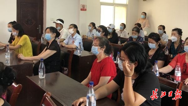 社区居民聆听万莹一家的战疫故事,有的人感动落泪。 记者陶可祎 摄