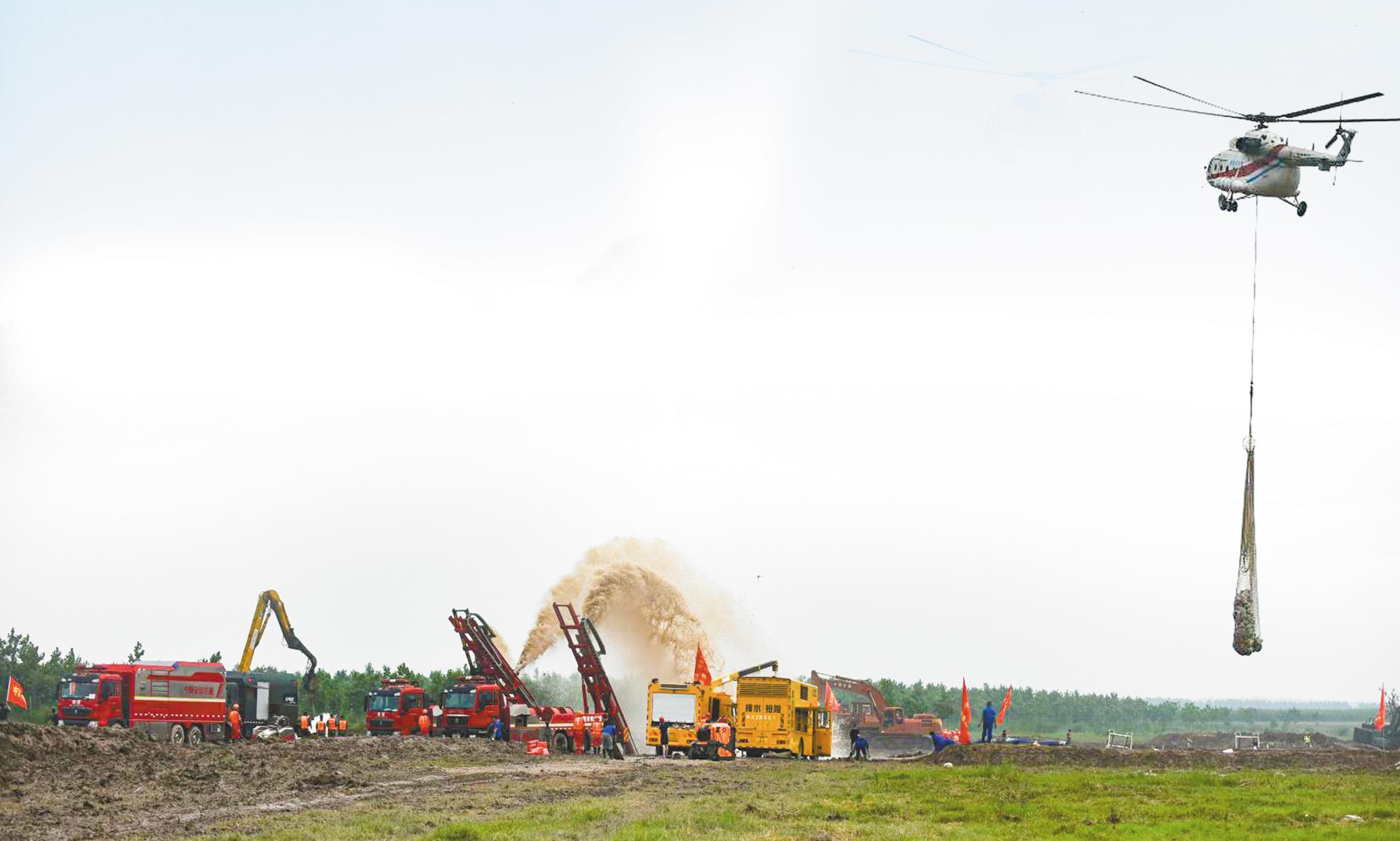 此次演练共有15支队伍1205人参与,实战演练了转移搜救、内涝抢排、抢筑子堤、决口封堵等科目。
