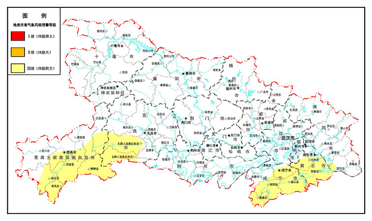 荆楚网客户端一荆楚网消息(记者徐蕾 通讯员杜琦)6月19日,湖北省自然资源厅发布最新一期地质灾害气象风险预警:2020年6月19日08时-6月20日08时,预计恩施(恩施市南部城区、巴东南部、建始南部、咸丰东部、来凤、宣恩、鹤峰)、宜昌(长阳、五峰)、咸宁(咸安区、崇阳、通城、通山)、黄石(大冶、阳新)、黄冈(武穴西部)以及其他暴雨中心发生崩塌、滑坡、泥石流的风险较大(Ⅲ级),请相关地方政府及有关部门做好地质灾害防范工作。