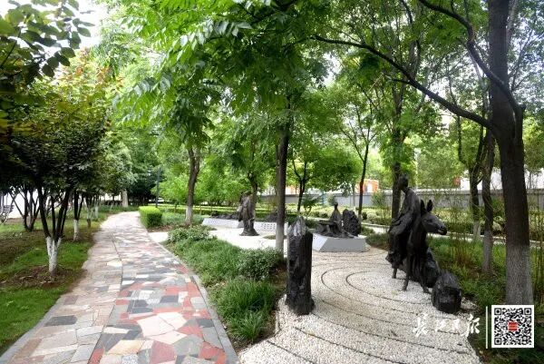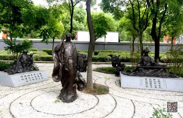 《两汉——诗人》人物群雕位于长江第一观景平台右侧平台植物园内,游园行人步道旁边。该群雕为“折线式”写实人物雕塑,雕塑两侧分别放置石头造型青铜铸造件,石头表面分别铸造三首两汉时期抒发长江情怀诗词节选书法。人物或端坐冥思或信步提笔,动静各态,张弛有度,表现两汉诗人的写意形象,展现中正沉稳、宁折不弯、端庄儒雅的儒家风范。