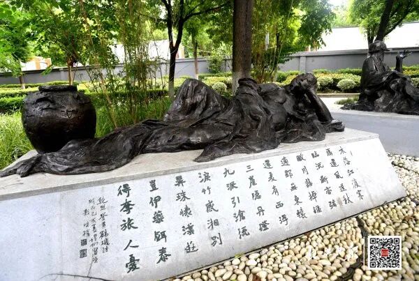 《魏晋——诗人》人物群雕位于长江第一观景平台右侧平台植物园内幽深处,在两个行人步道中间。该群雕为“曲线式” 写意人物群雕,雕塑左右分别放置石头造型青铜铸造件,石头表面分别铸造魏晋时期描写长江诗词节选书法。人物站卧穿插在林木之中,形骸洒脱,神态惟妙惟肖,野趣横生。表现魏晋名士浪漫多情、桀骜不驯、随性洒脱、高古情怀的人文风骨。