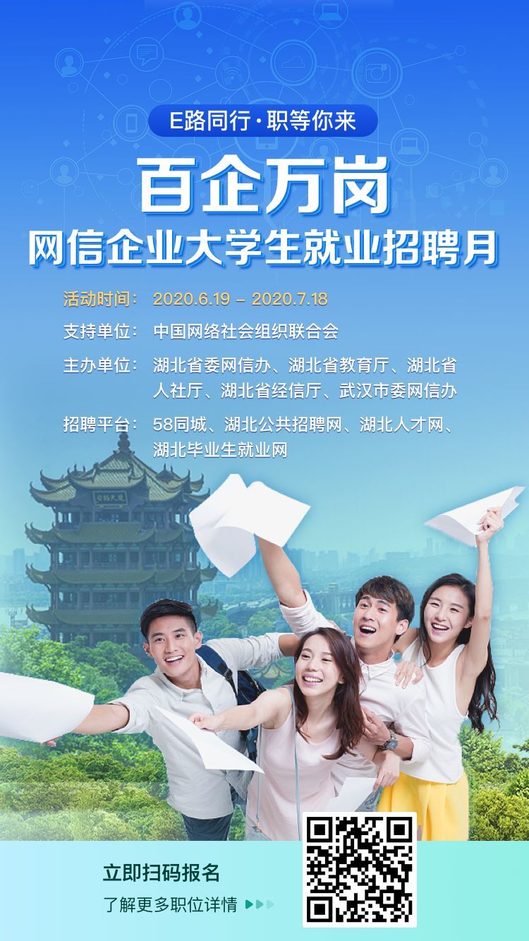 活动将通过“云”端招聘,分批组织百余家全国、全省网信企业发布万余个就业岗位,面向湖北高校大学生开展定向招聘,助力湖北大学生就业。