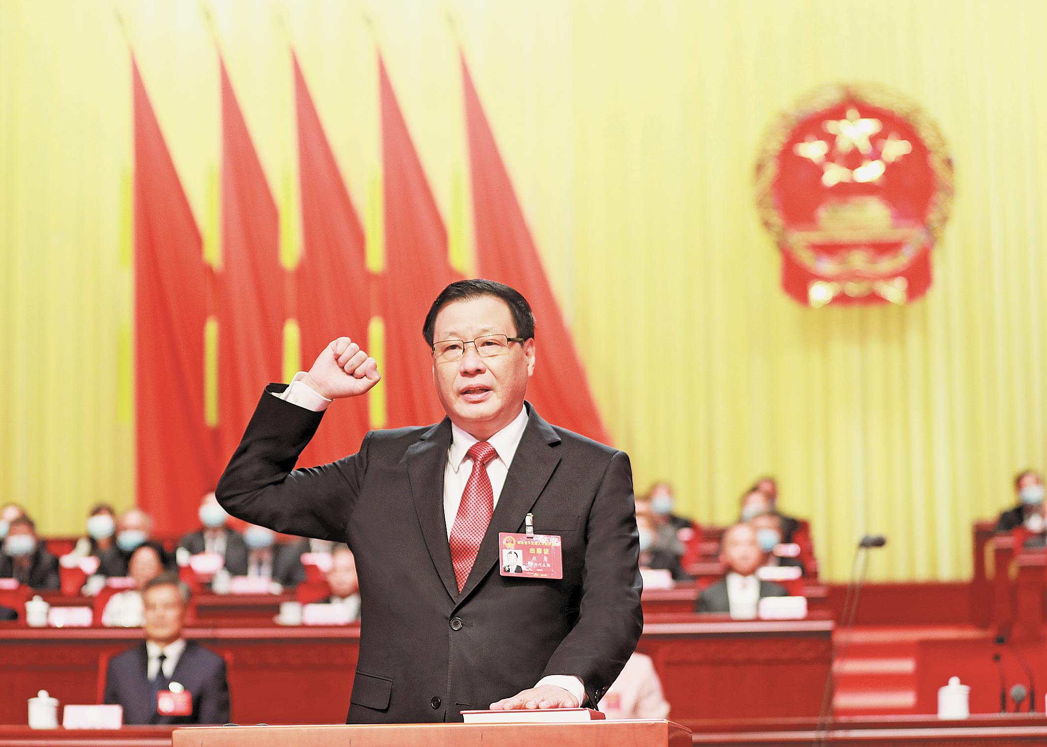 应勇同志进行宪法宣誓。 (湖北日报全媒记者 陈迹 摄)