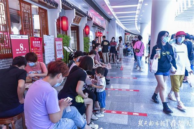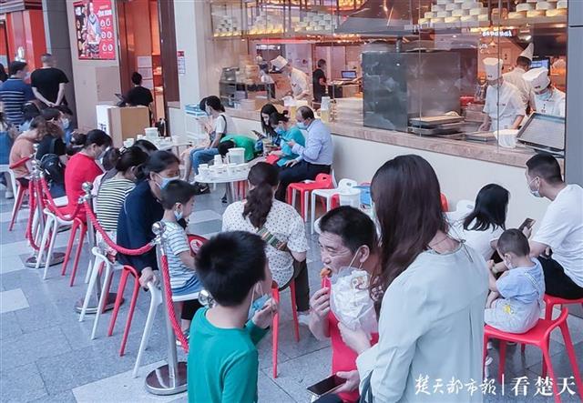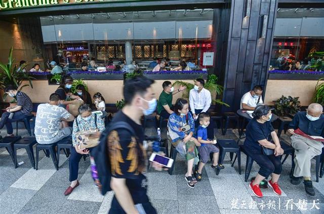 在武昌的汉街美食区、中北路商业中心、徐东商圈,多个品牌餐厅门口坐满了拿号等坐的人;在汉口武商摩尔城、西北湖商业中心、菱角湖商业中心,人气餐厅一位难求;位于三环边的东西湖竹叶海商业中心,消费者也是拿号等坐往往需要半个小时以上。