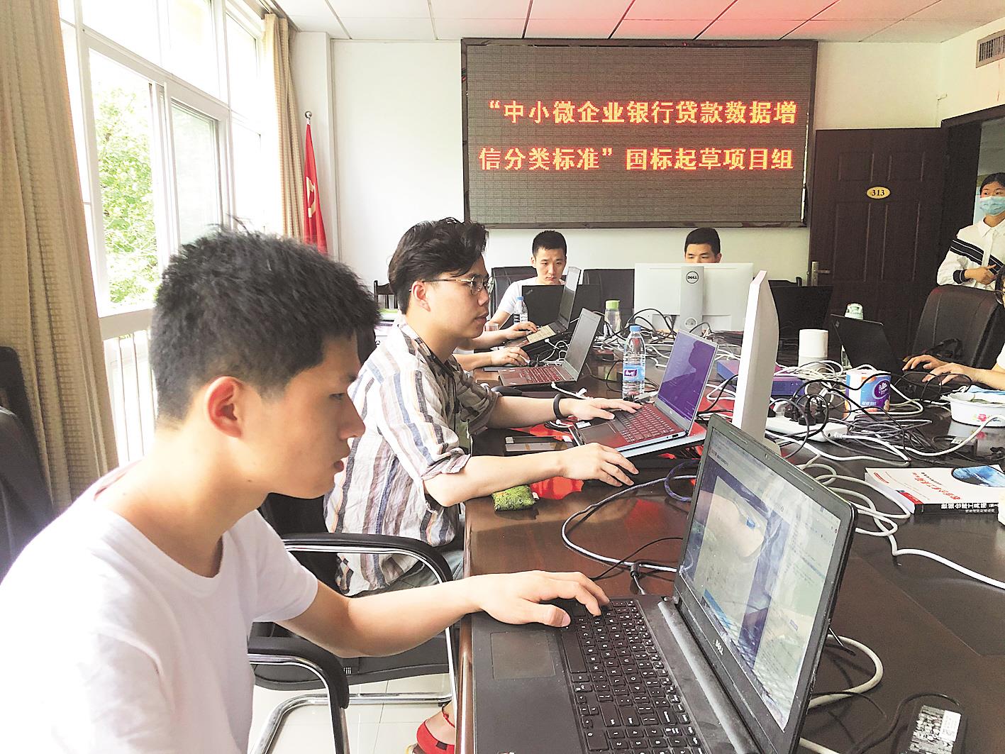襄阳财智联盟项目组在起草“中小微企业银行贷款数据增信分类标准”。 (湖北日报全媒记者 夏永辉 摄)