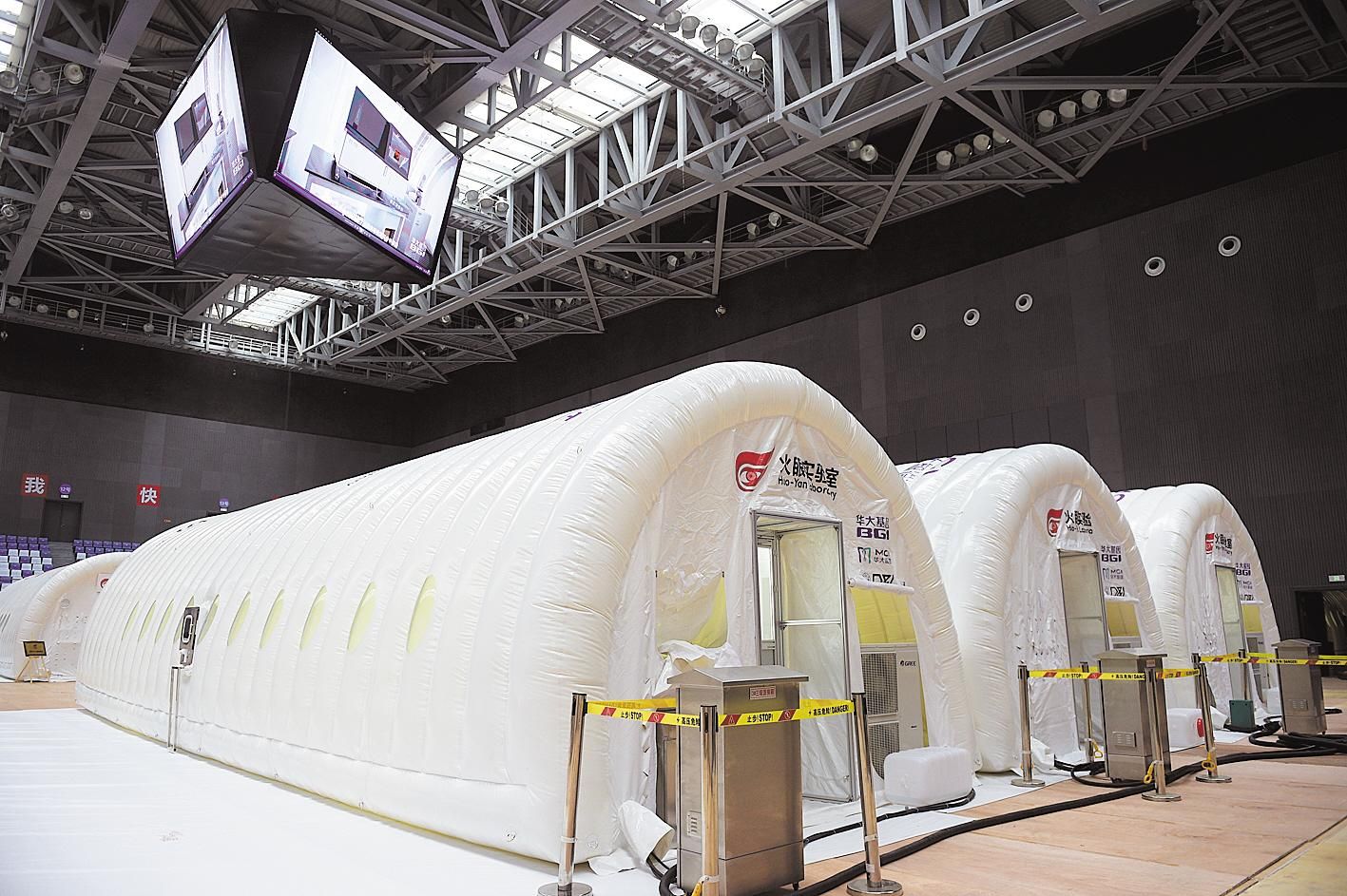 华大基因首席执行官尹烨说,这处实验室,除了3个气膜舱作为样本接收区,另外6个气膜舱能容纳14台自动化核酸提取设备,核酸检测能力能达到每天上万人份。