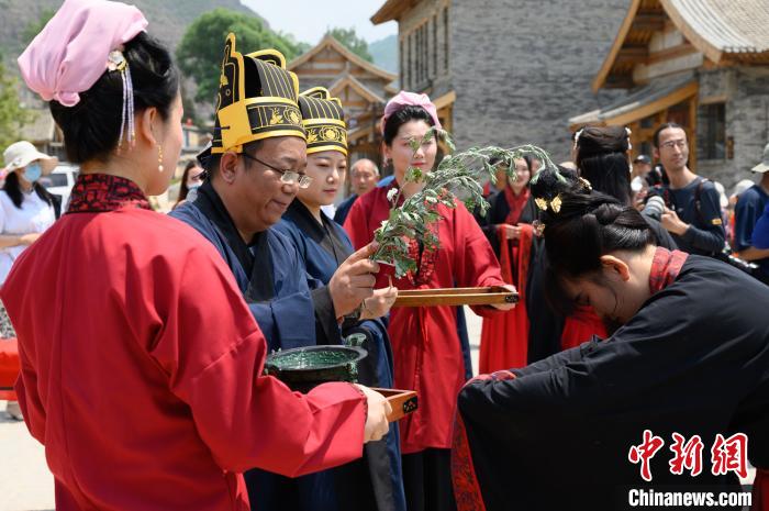中新网忻州6月22日电 (杨杰英)献牢、献花、献爵、献舞……21日,在山西省忻州市岢岚县王家岔乡古老的宋代长城脚下,上演着一场传统礼仪表演。