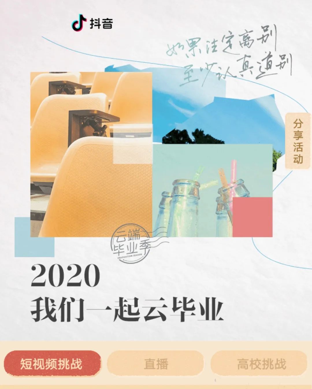 抖音“云端毕业季”话题下的视频累计播放已达1.2亿次。众多毕业生在视频里身着虚拟的学士服,与学校地标建筑合影。学生还可以在特效里选择自己的学位、学科,给学位帽拨穗,完成毕业仪式。