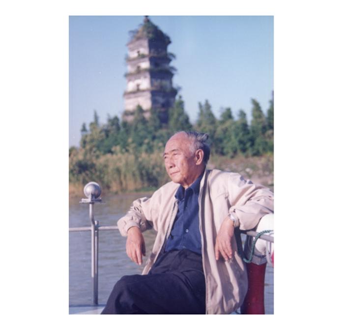 一九九一年,汪曾祺在故乡高邮的运河上。受访者供图