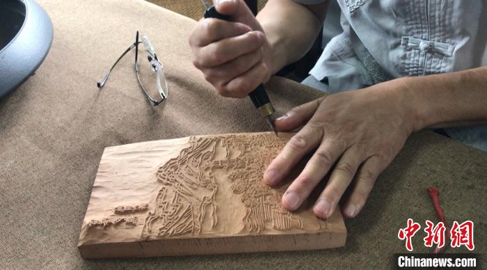 图为国家级非物质文化遗产传承人黄小建创作的“西湖十景”饾版拱花木板作品 江杨烨 摄