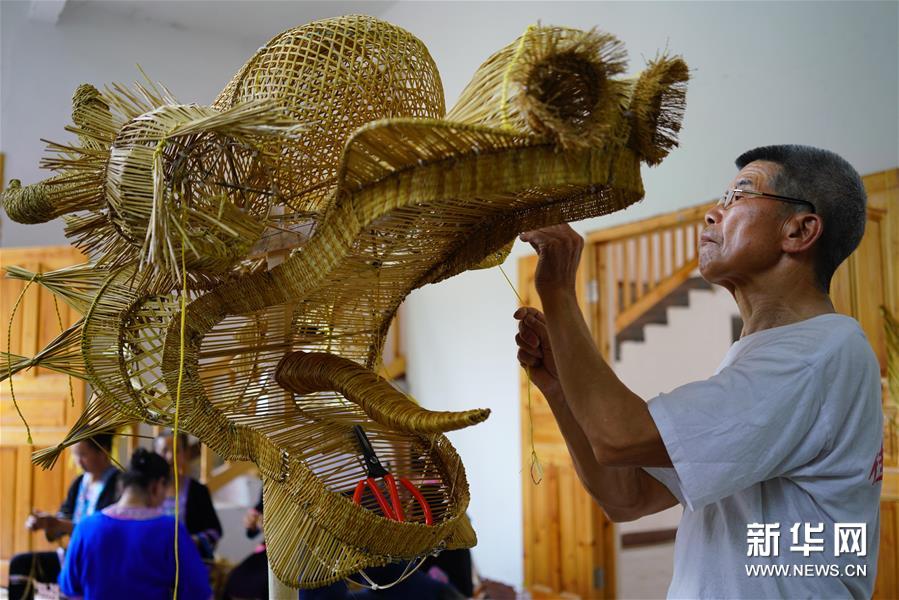 端午节临近,在广西龙胜各族自治县平等镇广南侗寨,侗族同胞赶制草龙迎接传统佳节。编织草龙是当地侗族一项独特的民间技艺,每逢重大节庆,侗族同胞都有舞草龙祈福的习俗。