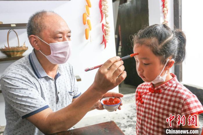 孩子接受老人的额点雄黄 王康荣 摄