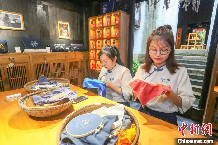 绣娘制作三闾刺绣产品 王康荣 摄