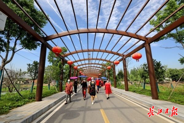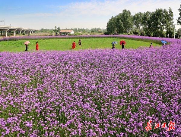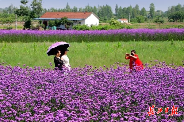 长江网6月26日讯 东西湖区东山办事处群力大队种植的50亩月季花、薰衣草等鲜花竞相绽放,6月26日,这里的生态田园美景吸引广大市民前来赏花拍照。(通讯员郭贤乐 摄)
