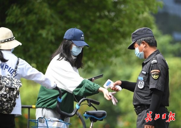 东湖绿道上空气清新,市民通过扫码测温进入绿道,跑步骑行锻炼。 记者高勇 摄