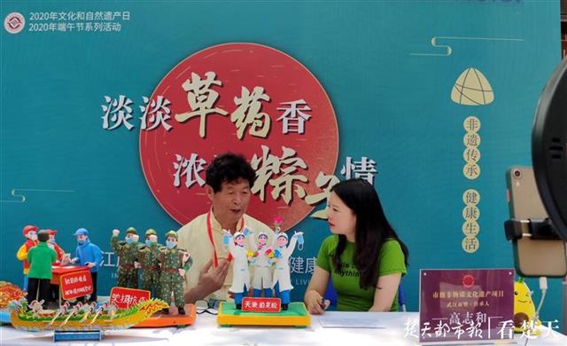 面塑非遗传人高志和,通过现场云平台推介展出自己原创的武汉战疫艺术佳作
