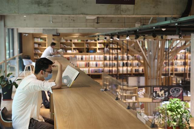 6月26日,武汉市洪山区一家书店内,市民静心阅读,享受书香生活。