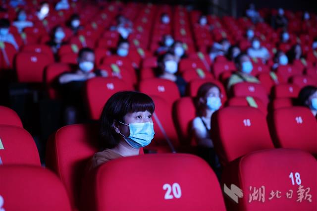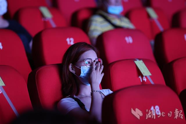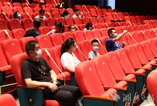6月26日晚,观众在武汉中南剧院观看原创抗疫话剧《最美逆行者》。当天,抗疫话剧《最美逆行者》首次在线下与观众见面,来自抗疫一线的医护人员、社区工作者和民警代表受邀现场观看。6月26日起,停摆5个多月的武汉演出市场终于恢复线下演出。中南剧场、天一戏院、人民剧院、楚乐戏苑、520剧场、武汉杂技厅、都市茶座恢复开放。(湖北日报全媒记者 柯皓 实习生 袁佳琪 摄)