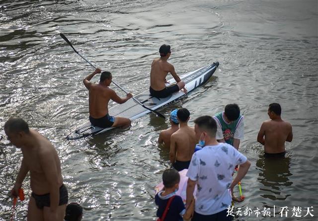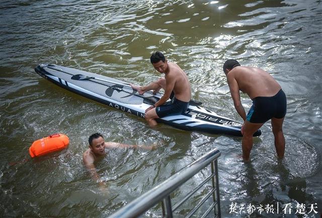 据桨板主人介绍,桨板运动起源于美国,是一种简单易学、老少皆宜的水上运动,群众参与度越来越高。今天玩的这个桨板可以容纳两个人同时游玩,由于大家都是经常来长江边戏水的常客,游泳技术都相当不错,玩起桨板来,都能得心应手。