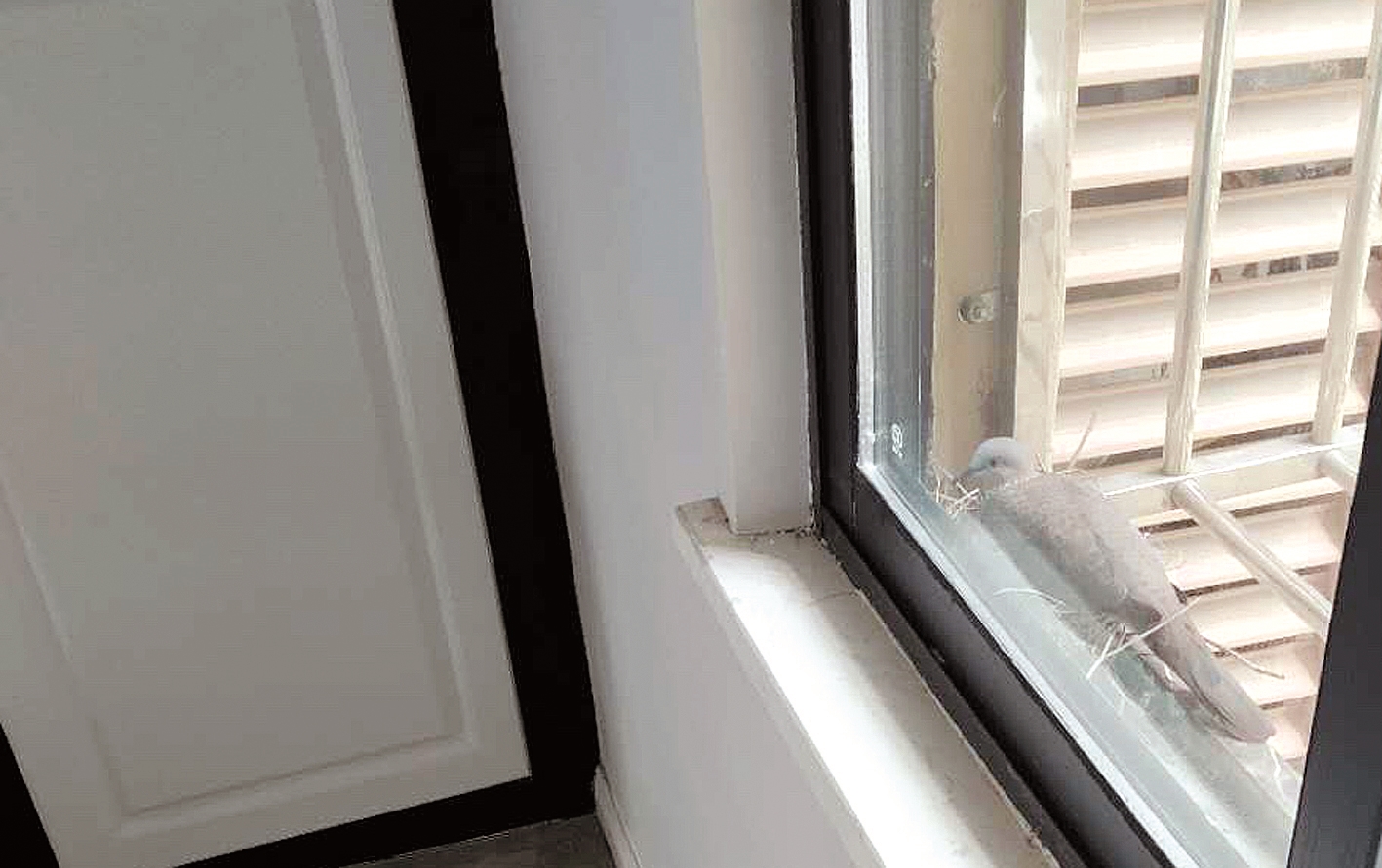 楚天都市报讯(记者满达)一对“斑鸠夫妇”三次上门,在客厅窗户外沿的同一个地方筑巢孵蛋,好心的主人家不敢开窗户,生怕惊扰了这些客人。昨日,家住青山区建设九路中交江景湾的刘先生说,斑鸠连续三次来家里筑巢育雏,他觉得很幸运。