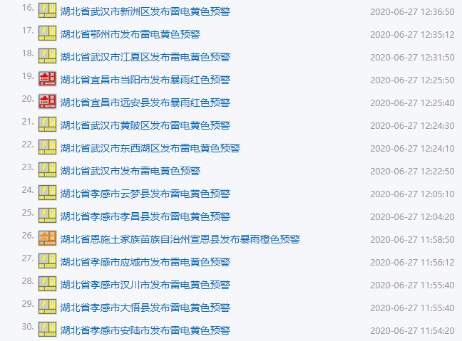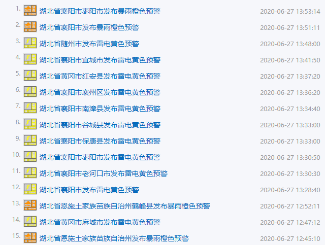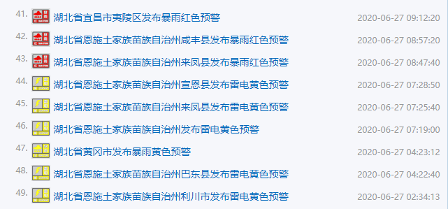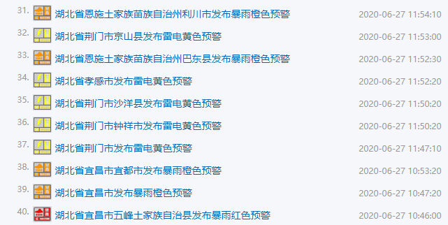 湖北已发布40条气象预警↓↓