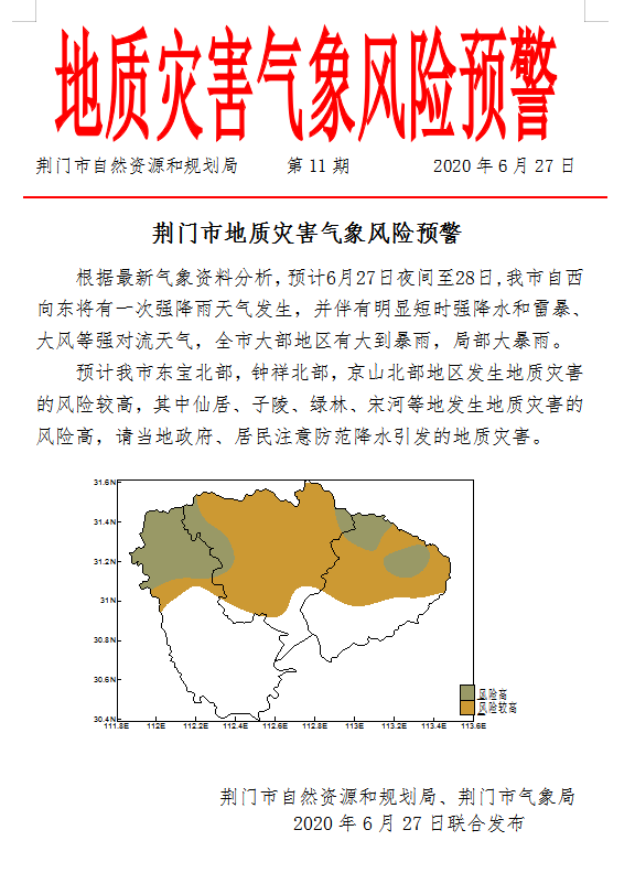 根据最新气象资料分析,预计6月27~28日,我市自西向东将有一次强降雨天气发生,并伴有明显短时强降水和雷暴、大风等强对流天气。