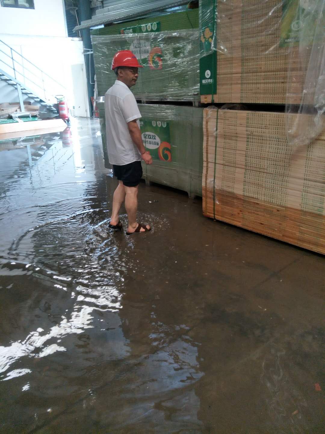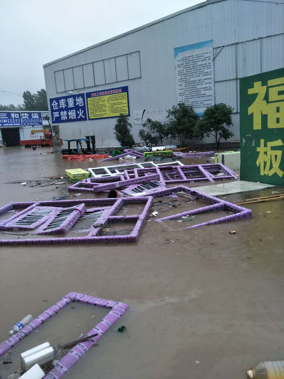 曾都区东城办事处:文峰物流园,百余家商户的仓库进水,商户奋力救灾。