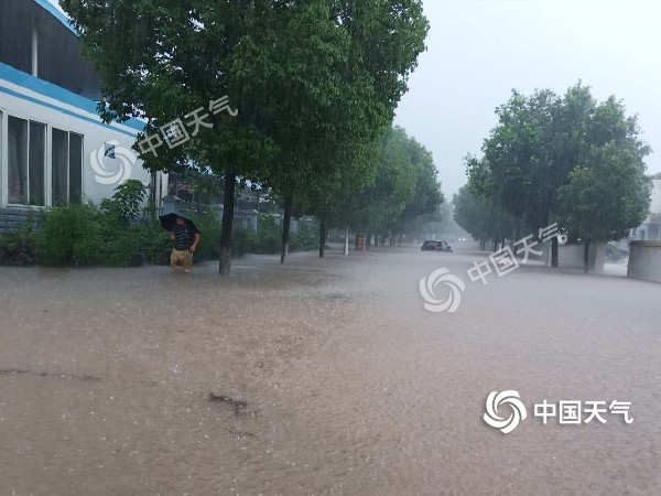 27日上午,宜昌远安出现内涝。 (图/高琪清)