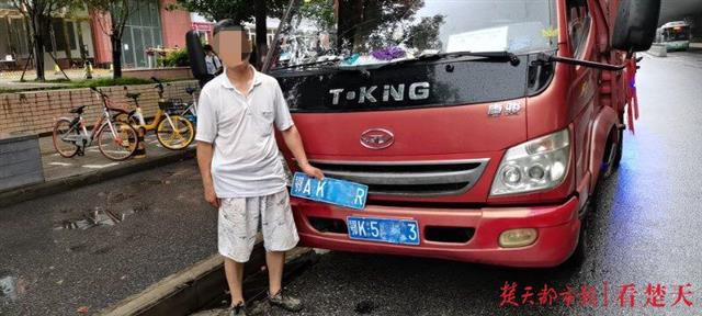 6月26日13时30分左右,洪山区交通大队二中队民警在珞狮北路开展交通违法整治行动时,民警杨念军拦下一辆违禁通行高架桥的大货车。检查中,民警发现该车辆的前后车牌号不一致,前号牌为鄂K5***3,后牌则是鄂AK***R。民警随即通过警务系统查询比对,发现前号牌鄂K5***3属于一辆白色小型客车,后面的鄂AK***R才是该车辆的真实号牌。